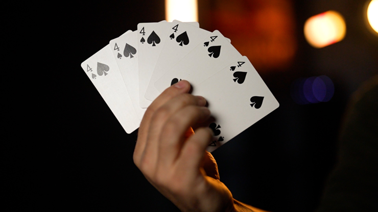 You start by showing five blank-faced cards and one Four of Clubs. The Four of clubs is brushed against two of the blank cards and they change to Fours! This is repeated with the other blank cards! At the end of the routine each and every card has turned into the four of clubs. And to top things off, ALL of the cards are shown FRONT AND BACK!