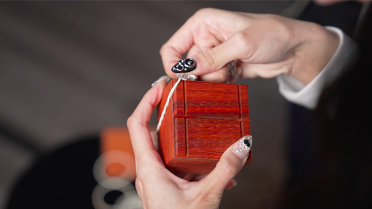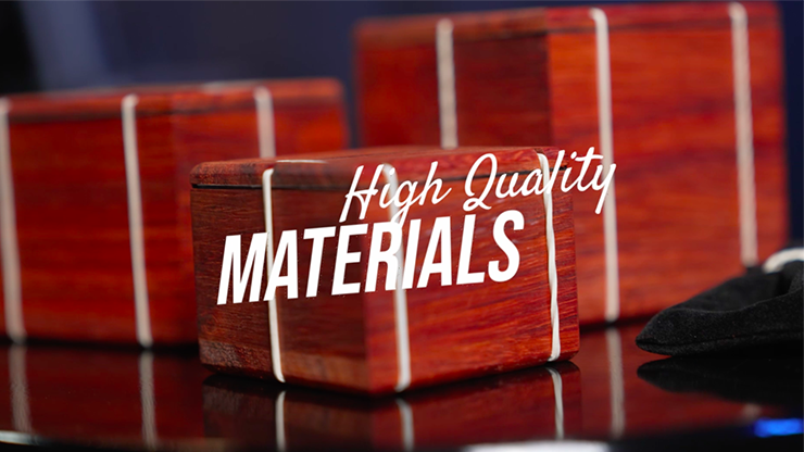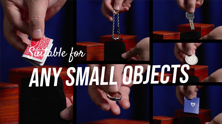 Spectators can freely pick and sign any card; it is then vanished magically. The magician then displays a beautiful wooden box wrapped with multiple rubber bands. The spectator is instructed to open the fully sealed wooden box, then realizes there is another sealed box inside. The second box is opened, and a third box is there. The last box is open showing a bag wrapped with rubber band. The spectator's card appears inside the bag as the perfect climax.