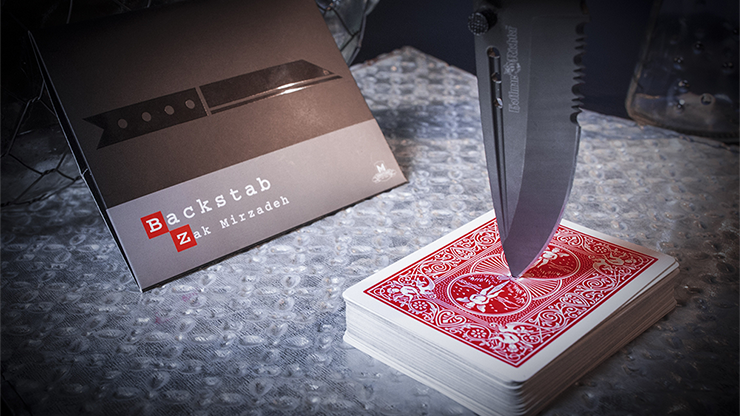Zak Mirzadeh's Backstab is the most impossible "Stab To Your Card" trick ever! Your spectator selects a card and loses it in the pack. With nothing more than your trusty pocket knife (or your spectator's pocket knife) - you stab straight to their selection for a miraculous "Card At Number" effect!