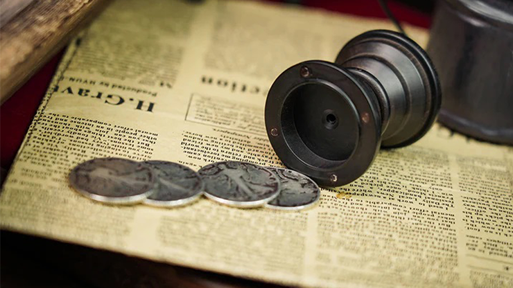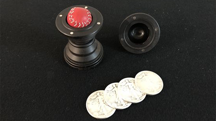"Barallel" is a play on the words "ball" and "parallel," and it refers to the unique symmetrical design of the vase. It features a holdout at the other end of the vase, which solves the common issue of lacking a big final ending. This allows you to perform the standard ball and vase routine, and then use the appearance of the coins as a final surprise or a smooth transition to a coin routine.