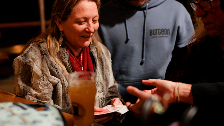 You begin by asking your spectator to IMAGINE a deck of playing cards. After shuffling the imaginary deck in their mind, you ask the spectator to think of a card. Once the spectator locks a card in mind you then point out a deck that has been sitting on the table the entire time and never touched by the magician. You ask the spectator to open up the deck, the magician still has no knowledge of what the card is, and asking the spectator to spread through the deck and find their thought of card. The card is removed from the deck and the deck is then turned over to show clearly that all the cards in the deck are red except for one card. The spectator turns over the card that they merely thought of and it is the only card with a blue back!