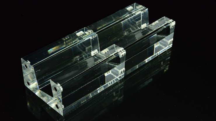 The Carat XDD is made of a solid piece of 3cm thick acrylic with dimensions 6.9cm x 5.0cm x 3.0cm and has a slanted groove 20cm wide to allow for most decks to sit comfortably in it. On each side, there are four neodymium magnets to allow for multiple displays to be connected seamlessly side-by-side. It comes with rubber pads that can be adhered on the bottom to prevent sliding on as well as scratching of surfaces.