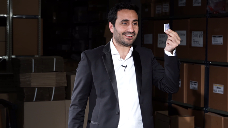 The magician says: "Today I'm going to show you the very first trick I learned." He shows a card folded twice. "I want you to name any card." The spectator replies e.g. "Six of Spades." The magician says "I never hit" and he shows that it's the wrong card. He says: "I've been trying this for years and I always miss," while he shows a transparent bag full of folded cards. After the laughs he says: "It's very hard to divine a card, but it's harder to catch a thought." He throws the cards from the bag into the air -- among the "showers" of cards, he catches one folded card. He unfolds it and shows it's precisely the named one!