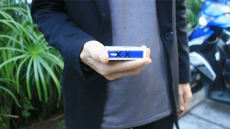 Triple X: A spectator selects a card, signs it, and holds it in their hand. Then the magician draws three X's on the card box. Here's when the magic happens! The magician shakes the box, the X's disappear one by one and appear on the spectator's card.