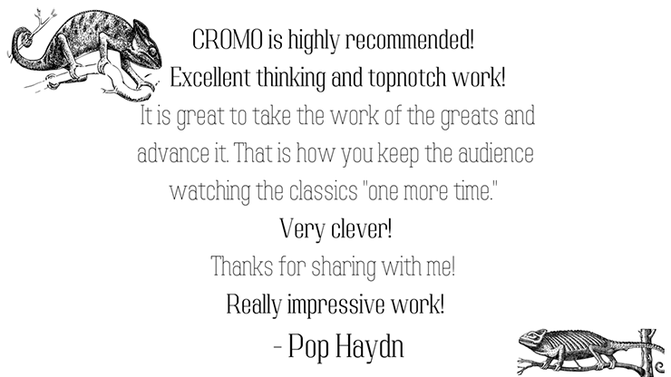 "CROMO is highly recommended! Very clever! Excellent thinking and topnotch work! It is great to take the work of the greats and advance it. That is how you keep the audience watching the classics "one more time." Thanks for sharing with me! Really impressive work!" - Pop Haydn