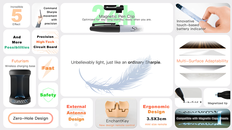 The design allows for writing, and the weight of the pen body is only about 3g different from a regular Sharpie (equivalent to the weight of a US Quarter coin), making it difficult for the audience to notice any difference even if you switch it out at the end of a performance.