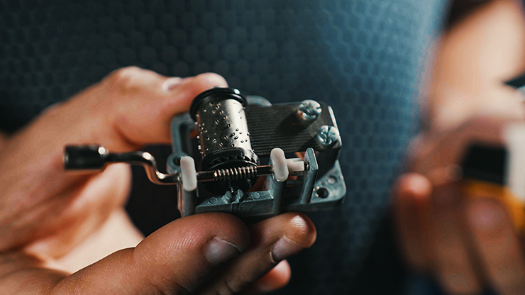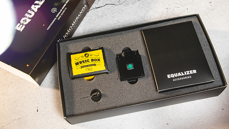 1. Music box: The magician shows a metal hand crank music mechanism and places it inside its box. The spectator then selects one song and when the magician plays the music, it matches the selection! For the big finish the music apparatus vanishes without a trace! (Equalizer comes with the gimmicked metal music apparatus and it's box and a set of Svengali blank cards, so the performer can customize to his own preferred song).