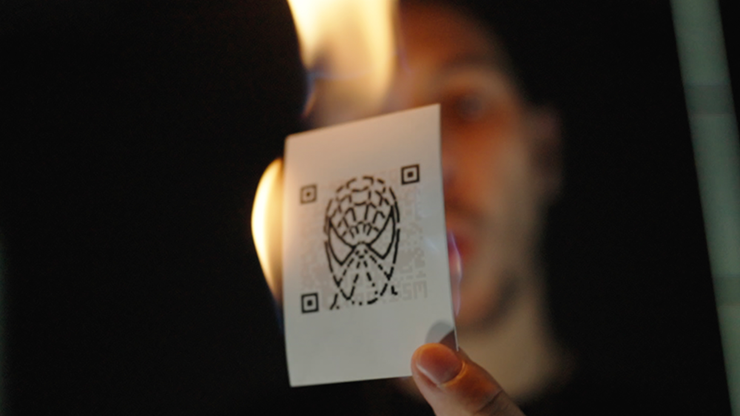 They choose a celebrity, a country, an animal or a movie... You, then show a QR code and ask the spectator to scan it with their phone to reveal the prediction, their thought! The spectator tries to scan the QR code, but it doesn't work- the QR code isn't recognized by their phone. You then reveal that today, QR codes aren't flashed with a phone but with a lighter! Lighting the lighter and bringing it close to the QR code, it visually transforms, and some pixels rearrange to reveal the spectator's thought.