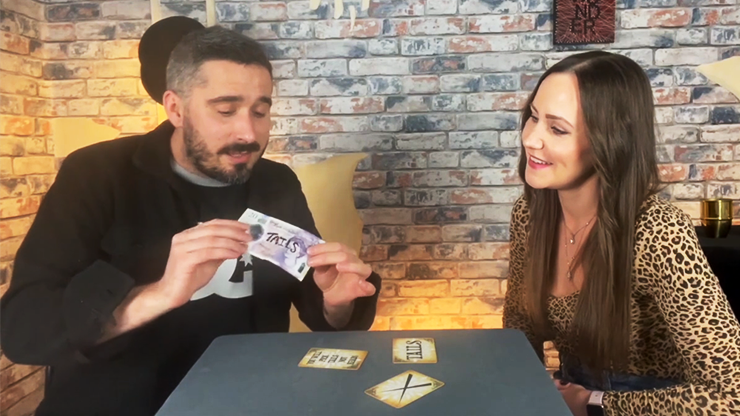 Somehow, you are able to tell your spectator with absolute certainty if the coin landed on heads or tails. Then you reveal your prediction to show that you knew what they would flip BEFORE they made their decision.