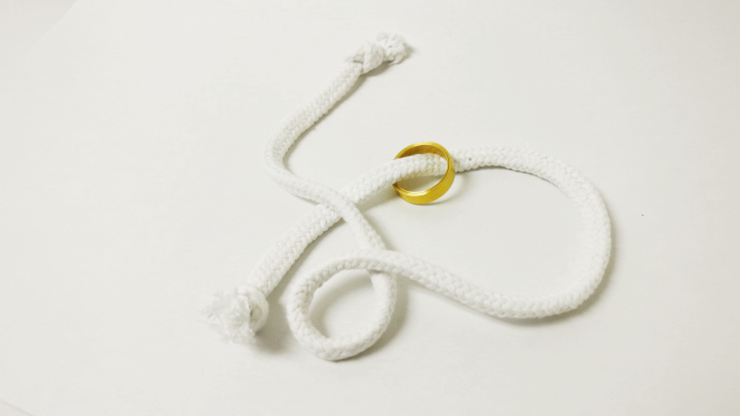 One routine features a magician removing his wedding ring in a magical way, then going into a multi-phase ring off rope routine. The opening of this routine offers a novel method for showing a large ring on your finger, so it appears tight, even when you show both sides of your hand. You then thread the rope through the ring, pull and stretch the ring, and make it penetrate through the finger.... then the routine starts.