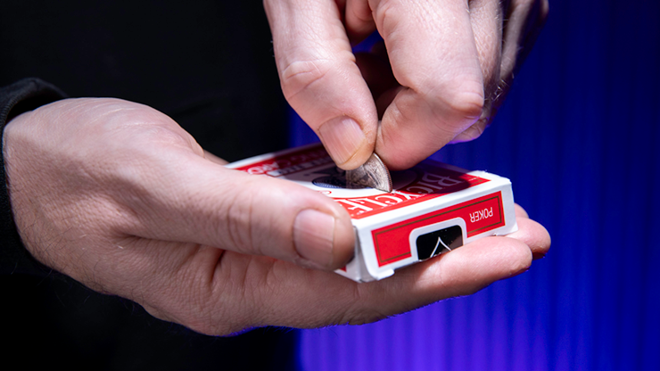A quarter or knife is pushed through a playing card tuck box. This doesn't seem like that impressive of a feat until you open the box. Your audience won't believe their eyes when they see a solid steel block fall out instead of a deck of cards.