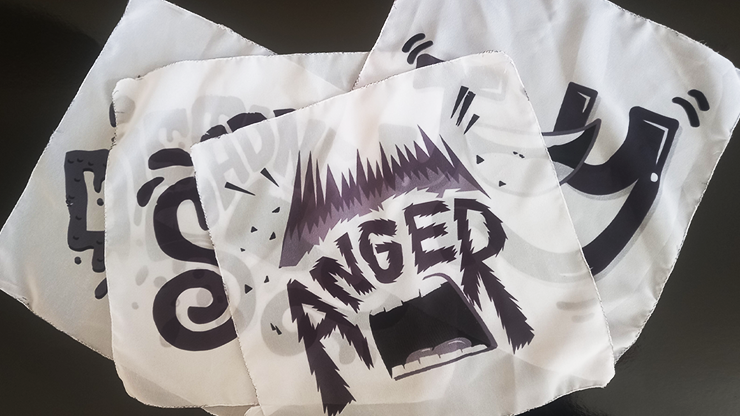 With four monochromatic scarves, each representing an emotion (disgust, anger, sadness and joy), you invite your audience on an emotional journey. Using a change bag (not included), the scarves absorb the audience's energy and... transform into vibrant colors that represent each emotion!