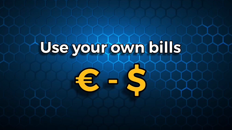 Modify the value of a bill under the spectator's eyes! NO PRINT is so VISUAL, really EASY and NEW, always in your pocket ready to perform in the restaurant, to your friends, at the shop cashier the effect is SO CLEAN... Your spectators turns crazy, just believe me!