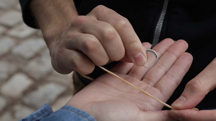 Conditions are extreme: you give someone the rubber band to examine and you ask for a ring from someone in the audience. The spectator grabs the rubber band and the ring (both clearly appear to be separated) and then the spectator closes his or her hand. When the spectator opens the hand, the ring is now interlaced with the rubber band. Everything happens in the spectator's hand! And there's more. The ring can separate from the rubber band many times. It is extremely visual.