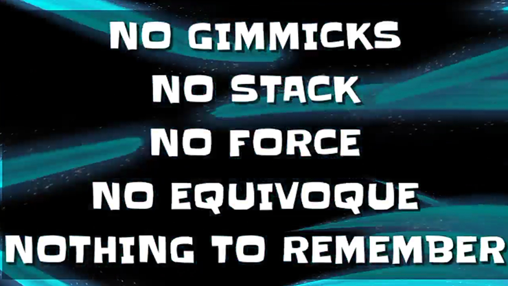 The spectator randomly chooses one card from his deck without seeing it, and so does the magician. Both the choices are completely free. No forces and yet both of the selections perfectly match. MIRACLE !