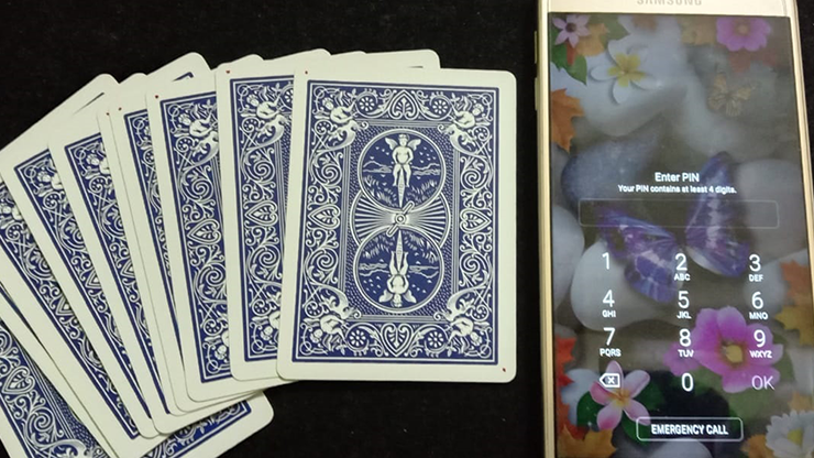 Effect: A cell phone whose screen is locked by a 5 digit P.I.N is kept in full view. Next the performer introduces 10 cards bearing numbers from 0 to 9.