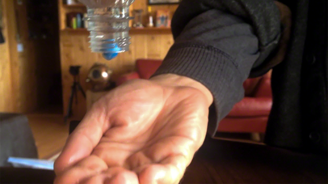 The good news is; You never have to hide anything in your hands! Plus there are no chemicals or sticky stuff involved. Your spectator can even take a sip of water from the bottle during the performance! Your hands are 100% clean... At ALL times!