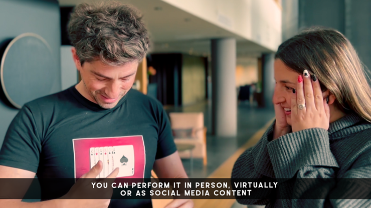 2) The card chosen by the spectator is plucked out from the t-shirt in the most visual way you can think of, with completely clean hands.