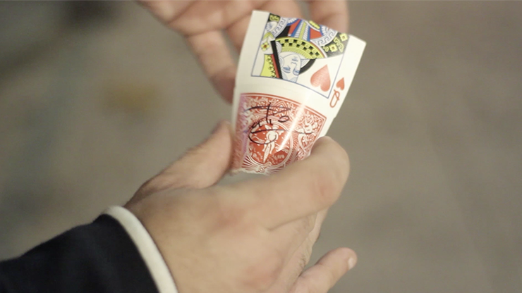 Without any cover or special moves the signed halves are restored BACKWARDS and PIVOTED against each other, making the restored cards a wonderful souvenir that the spectators will never forget.