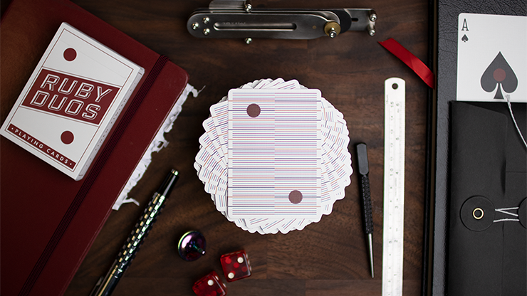 The Ruby Duos are a uniquely edge-marked deck that lets you locate any card from a shuffled pack without looking at the faces or even spreading the cards. Think of them as an instant memorized deck.