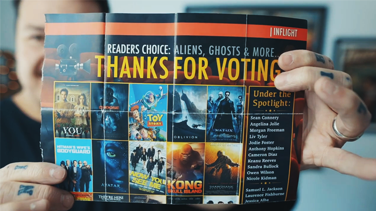 Super Direct: The participant begins by merely thinking of any of the 25 famous movies that are printed upon the magazine page. They are further asked to think of any celebrity who has appeared in their chosen movie from a list of 30 different possibilities. The mentalist is then able to reveal the person whom they are thinking of in a laser direct fashion.