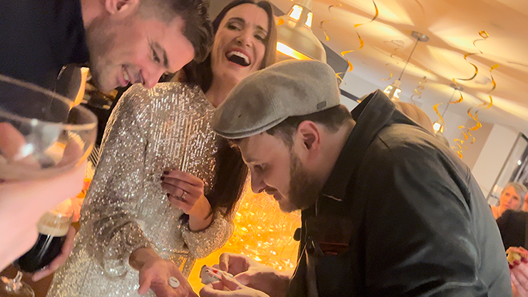 You have to actually break open the middle of the pack - it's an unbelievably strong sight and sound - the rip - the pop - the burst - revealing their item IMPOSSIBLY wedged in between the other mints as you drop it into your spectator's hands. You can even choose to have fragments of broken mint fly out when you break the pack open. And yes, of course spectators can even take a real mint.
