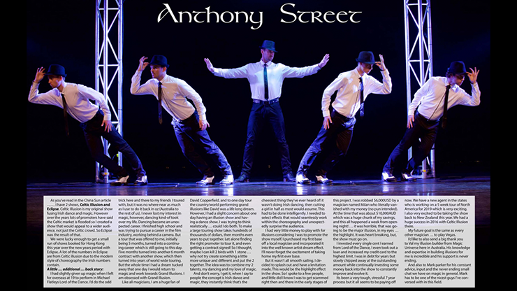 This edition features Anthony Street from Australia - he combines Celtic dance and music with illusion and has toured the world presenting a very different type of illusion show.